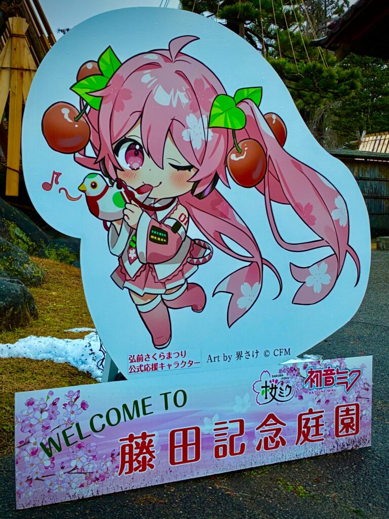 ¿Recuerdas levan polka de Miku? Aquí en Hirosaki podrás encontrarla en una versión diferente a su habitual atuendo azul, Desde su versión Cherry Blossom y Snow Miku que las podrás encontrar alrededor de la ciudad, son una oportunidad perfecta para poder tener esa fotografía única en Japón.