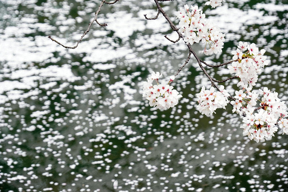 원내 전역의 왕벚나무가 절정을 맞이하여 많은 관광객들로 붐비고 있다.
